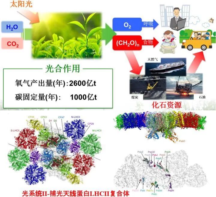 合作团队利用单颗粒冷冻电镜技术,先后解析了海洋硅藻三角褐指藻的FCP高分辨率晶体结构、硅藻的光系统II (PSII)与FCPII的超级复合体结构、绿藻-假根羽藻的PSI-LHCI超分子复合体结构、绿藻-莱茵衣藻完整的C2S2M2N2型PSII–LHCII超级复合体结构。上述四项成果率先破解了硅藻、绿藻光合膜蛋白超分子结构和功能之谜,不仅对揭示自然界光合作用的光能高效转化机理具有重要意义,也为人工模拟光合作用、指导设计新型农作物、打造智能化植物工厂提供了新思路和新策略。